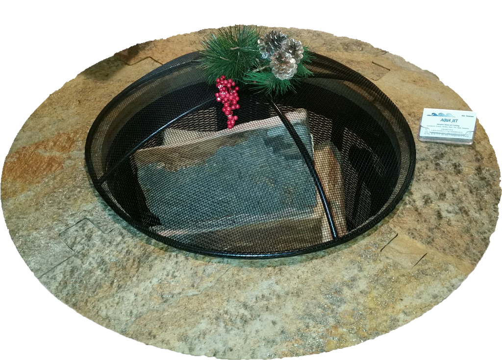Metal Fire Pits with paneled sides features cut-out images and metal lattice creating a cozy, scenic view of the fire. The fire pits are available in a variety of image themes including wildlife, western, fishing, horses, winter and more. The fire pits are also available in custom themes featuring either six or four panels with your choice of images. The stone ring around the top of the fire pit is cut from beautiful Southern Idaho stone. Each stone top is unique and fitted together from three pieces that can be removed during transport of the fire pit.